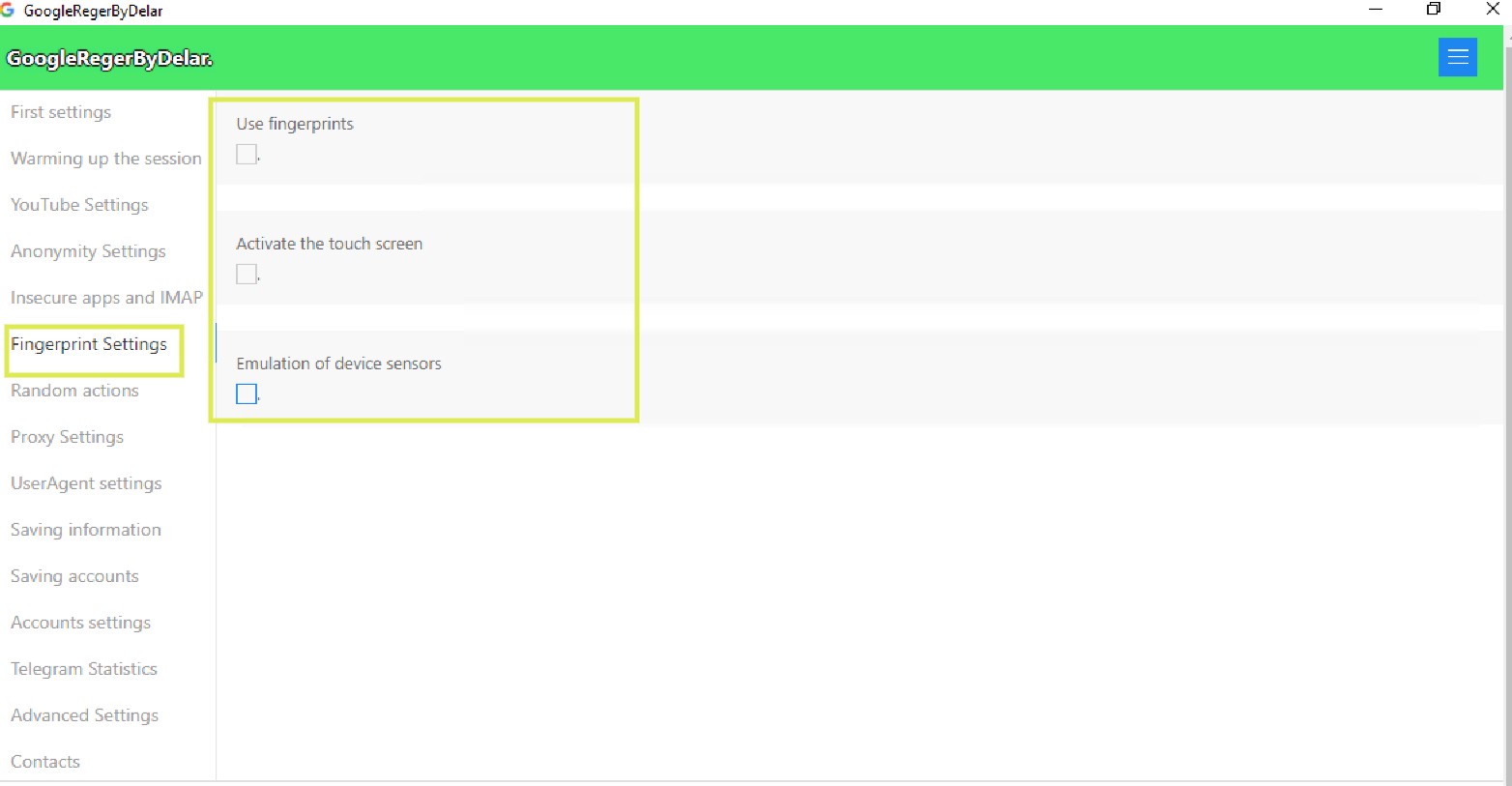 When enabled, the browser session behaves as if there are sensors present, making interactions look more realistic. This setting allows the software to **mimic sensor data.**