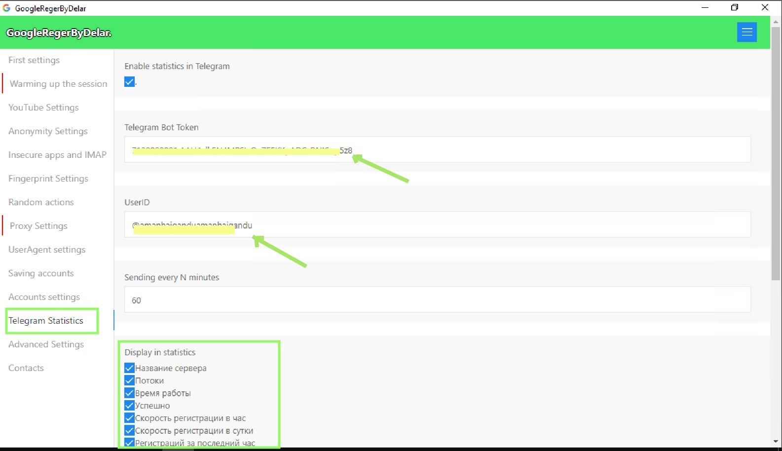 This helps manage and track automated tasks related to Telegram accounts. These settings are useful for monitoring the performance, success rate, and status of various actions performed within Telegram, such as account creation, message sending, and login attempts.