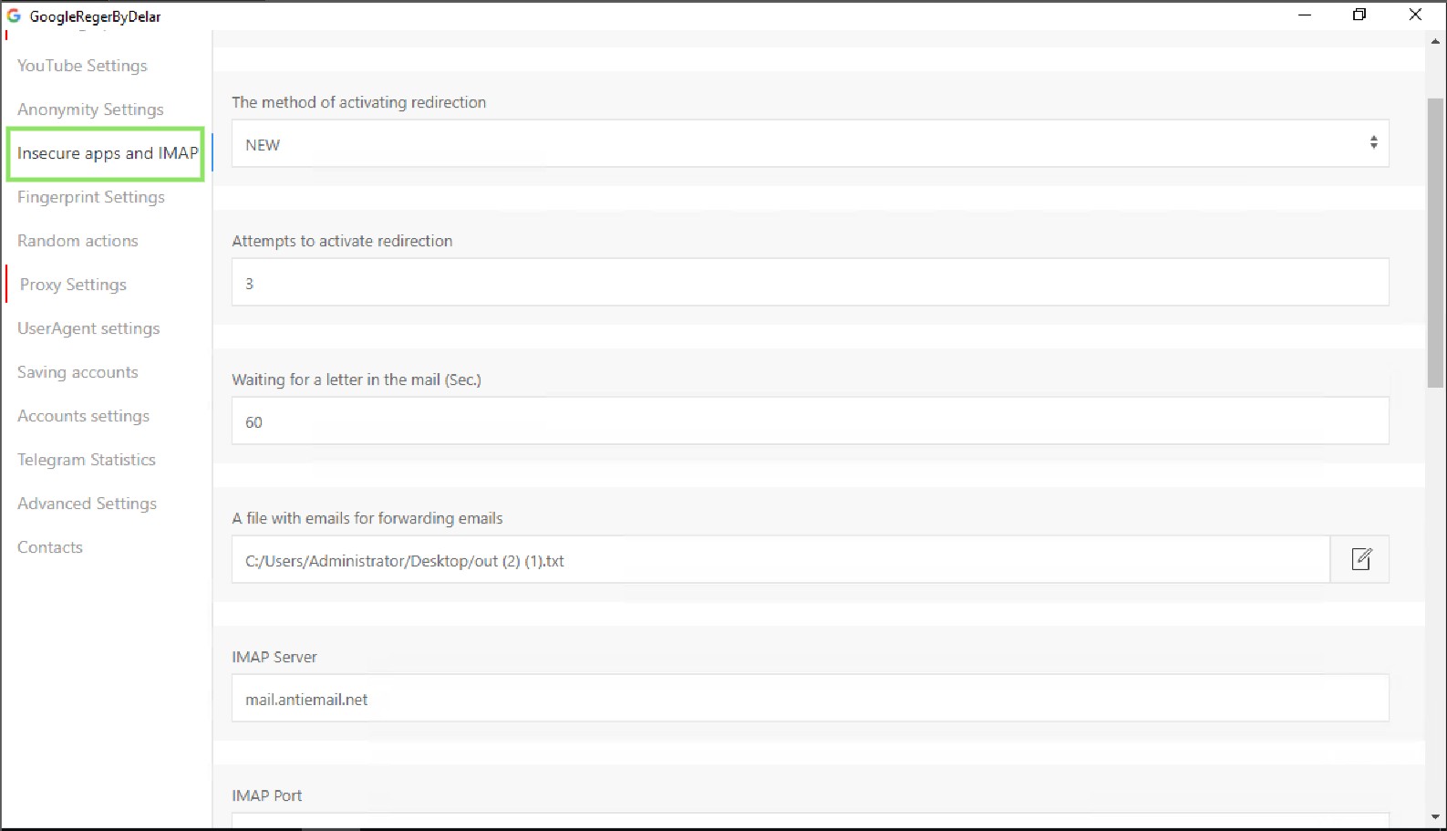 6. Чекер на валидность (IMAP) (<mark style="color:yellow;">**Account Validity Checker via IMAP**</mark>)